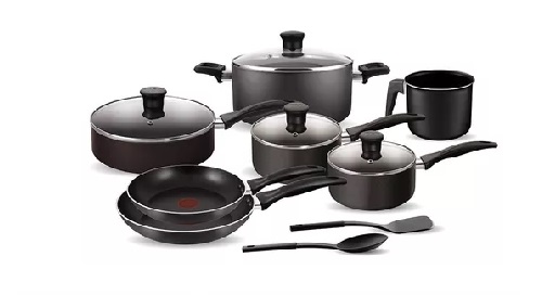 Incluye 1 sartén 22cm, 1 sartén 24 cm, 1 wok 28 cm, 1 olla con tapa 22 cm, 1 olla con tapa 24 cm, 1 olla con tapa 28 cm, 2 cucharas, 1 espátula.