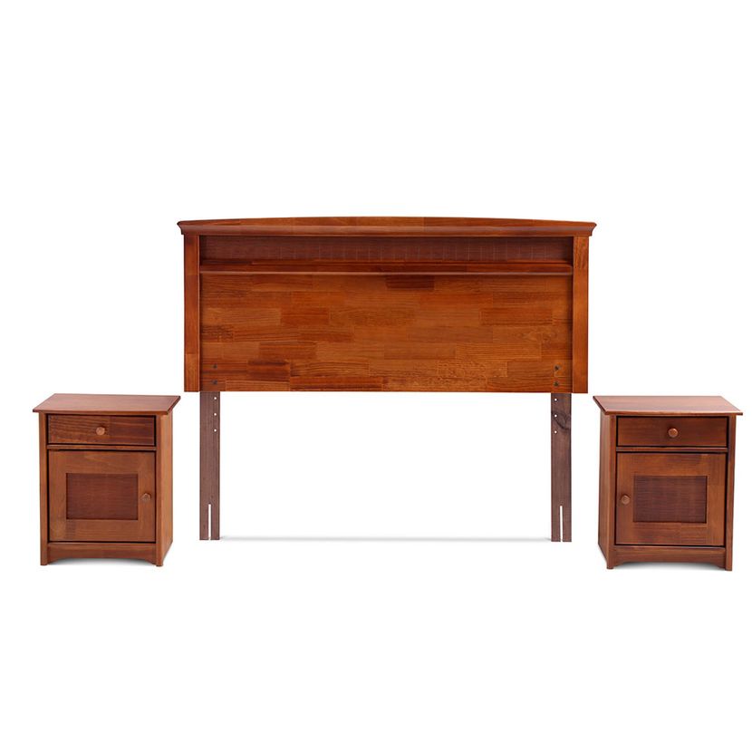 -Velador: Madera de pino con aplicación de bambú, tiene rieles metálicos y tirador de madera.
