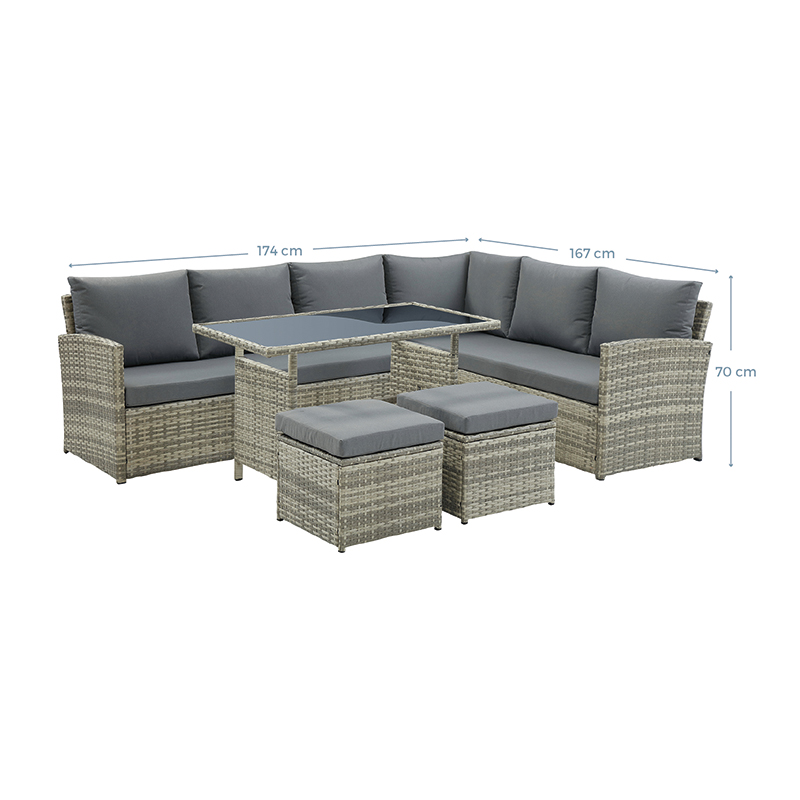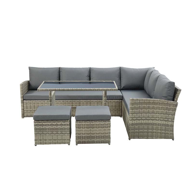 MATERIALIDAD: Acero Vidrio Templado / Sillas Rattan Poliester / Esponja Sofa Poliester
