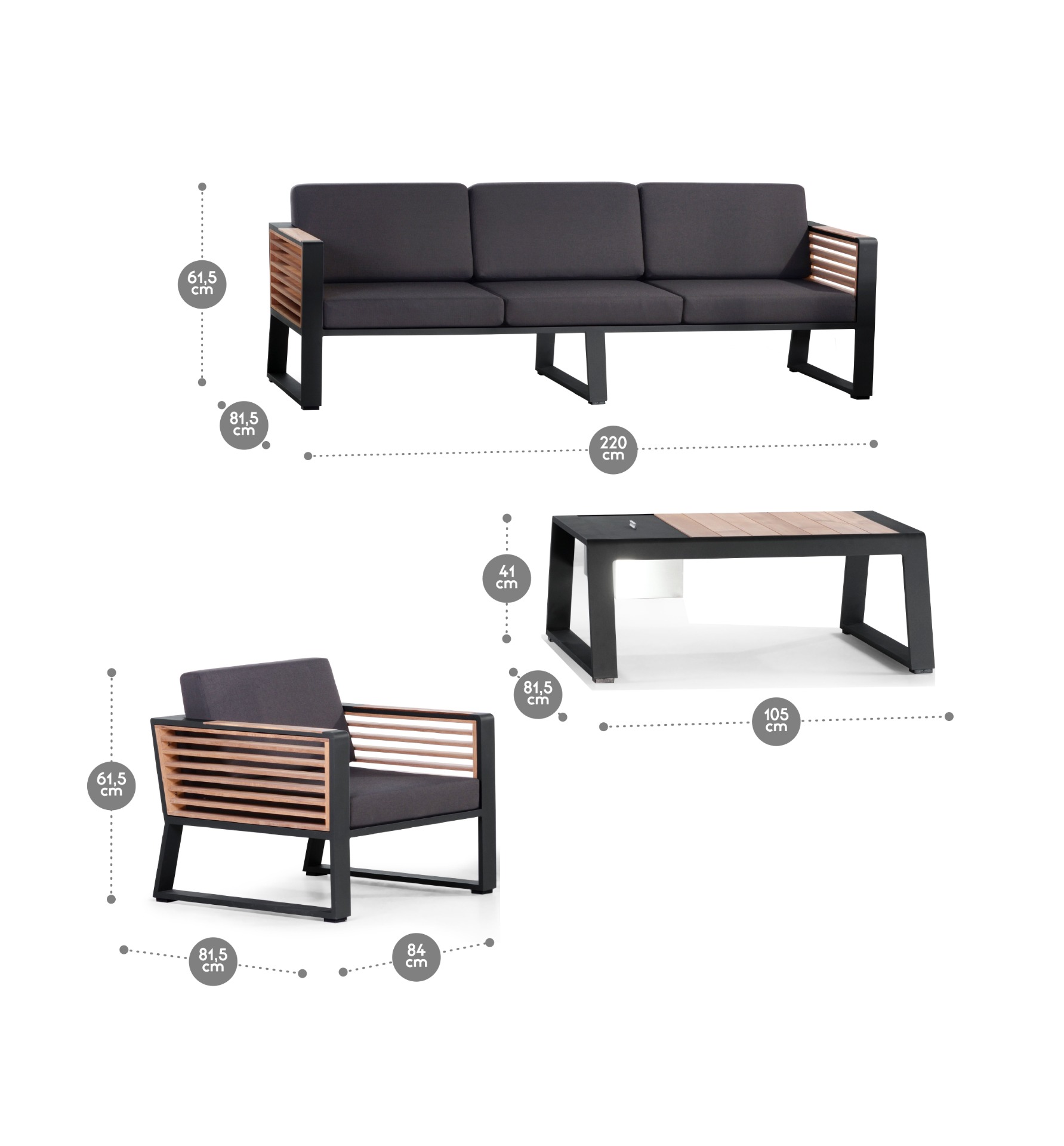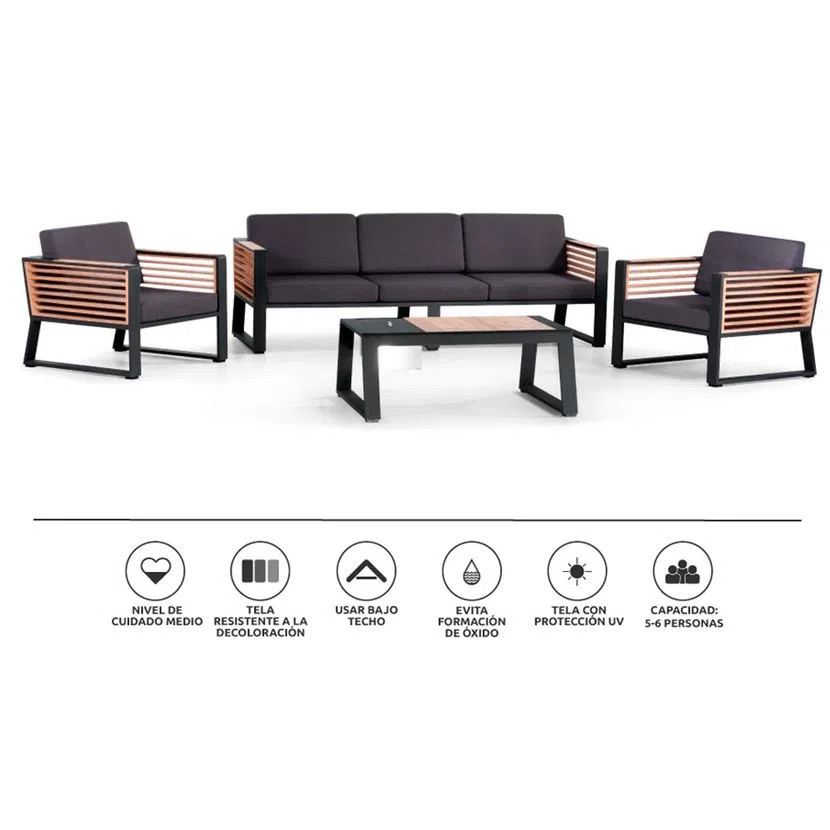 -Estructura: Aluminio y madera teca en laterales