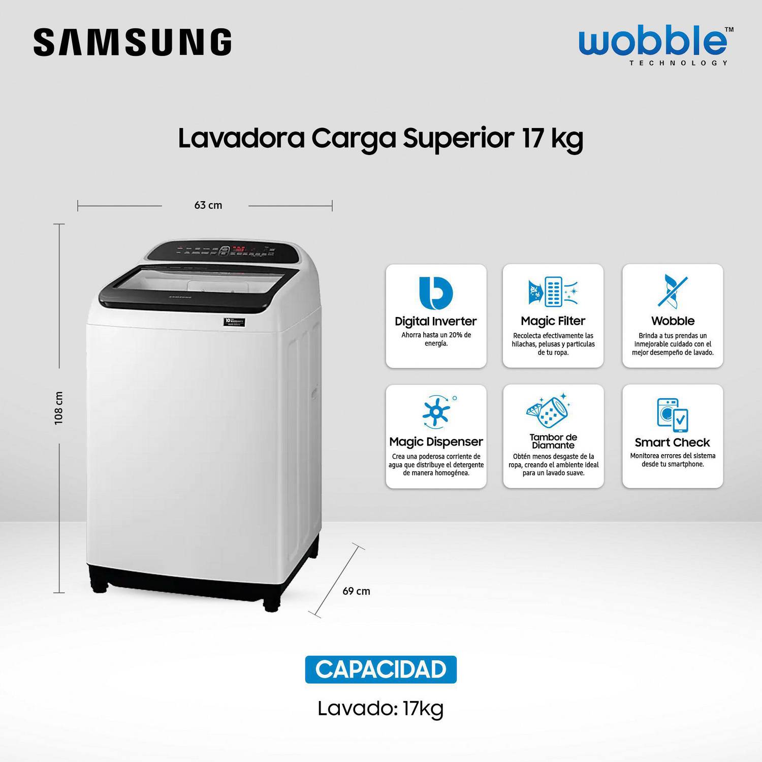 Capacidad de lavado 17 kg