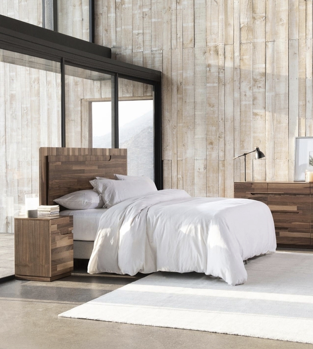 -Tableros de aglomerado, MDF y madera de álamo revestidos con chapa de nogal de colores contrastados. (nogal mallado y nogal clase A.)