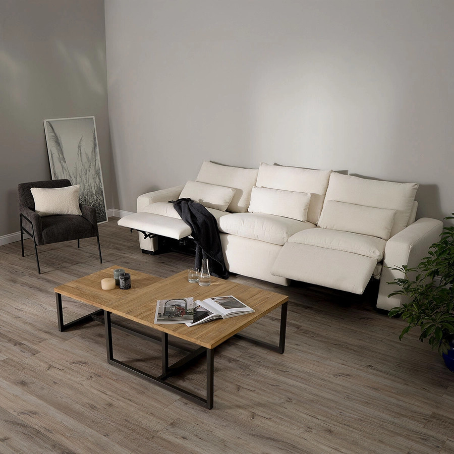 - Butaca Izquierdo: 109 x 98 x 96,5 cm- Butaca Derecho: 109 x 98 x 96,5 cm- Butaca Central: 84 x 98 x 96,5 cm- Profundidad interior asiento: 58,5 cm- Alto asiento: 57 cm- Ancho patas: 18 cm- Ancho brazos: 24 cm- Patas: 18 x 13 x 5 cm